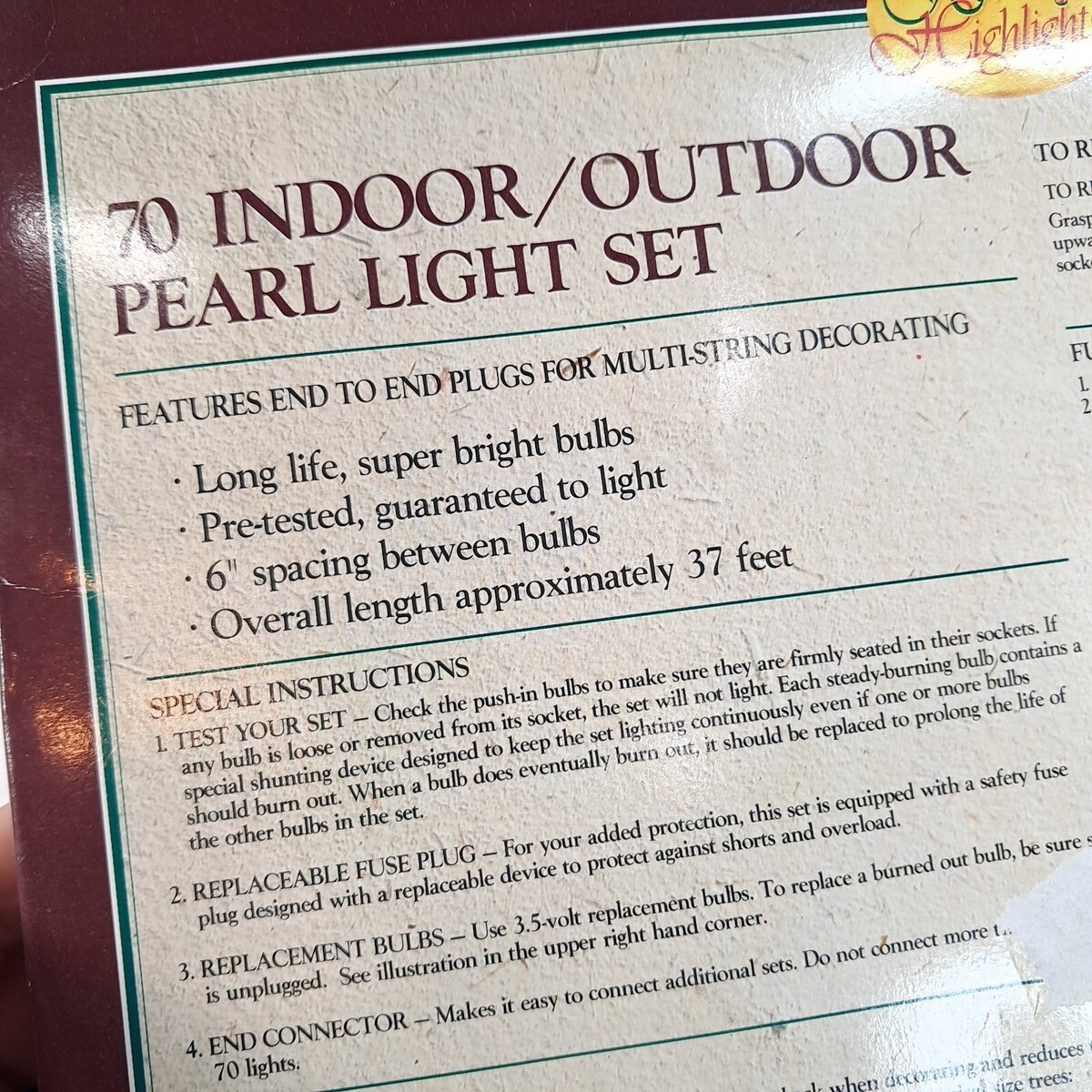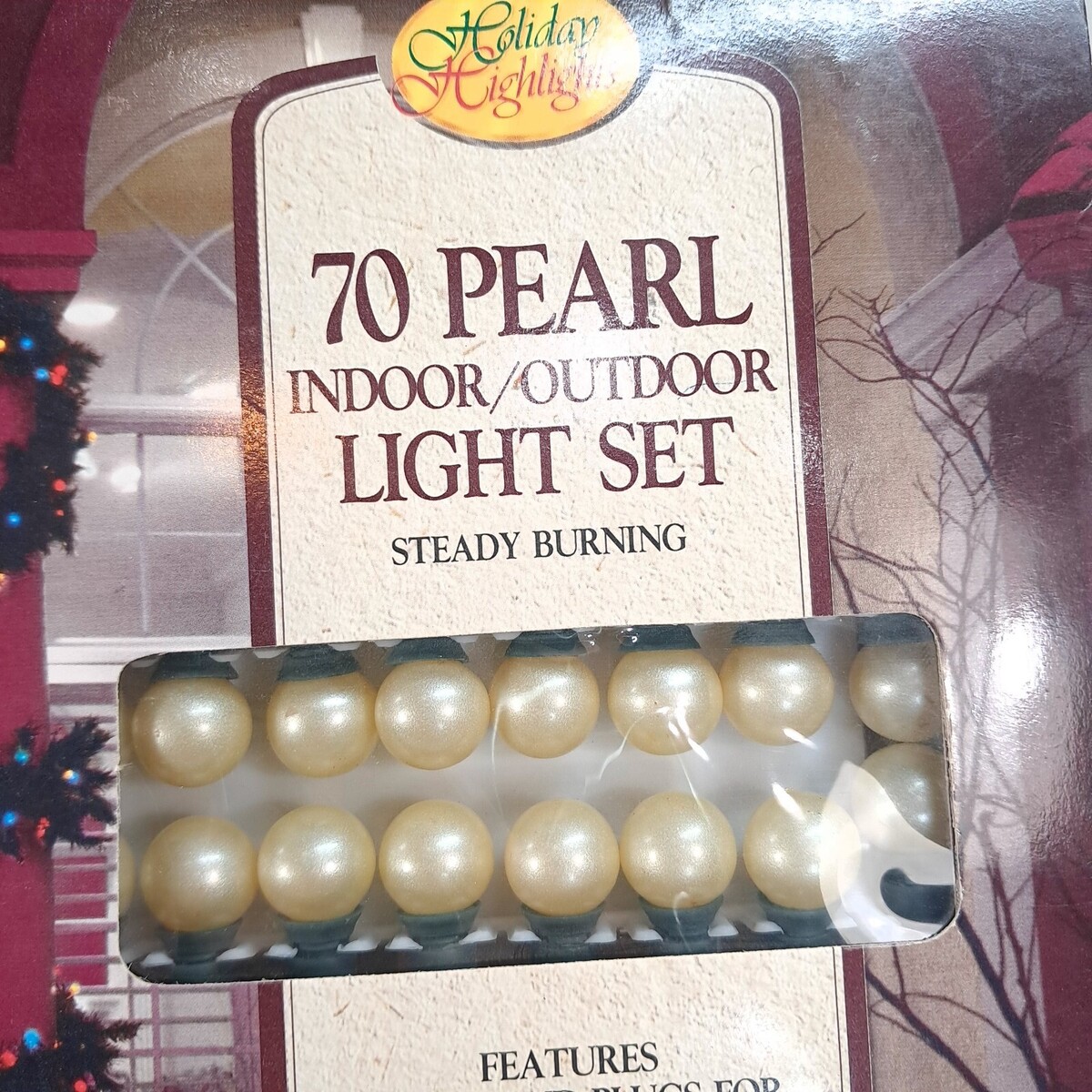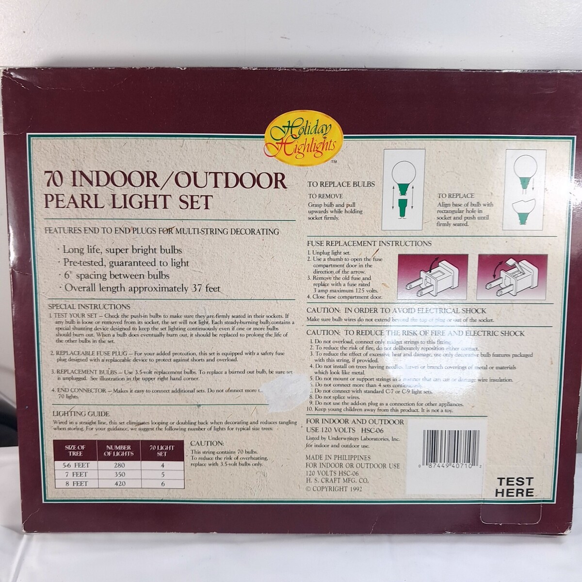 - Holiday Highlights 70 Pearl Light Set Christmas string Lights white 1992 Vintage