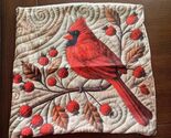 - Holiday Pillow Cover w Cardinal Perched on a Branch w Berries 18 x 18" Square