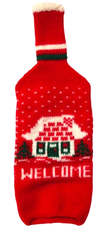 - Holiday Sweater Knit Welcome Christmas Liquor Wine Bottle Cover - Pre-Owned