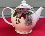 Holiday Wishes teapot Poinsettia, pine cones 7 14" tall, 9 1/2" wide, 6 cup, 40 oz to top, excellent condition, no chips or cracks.