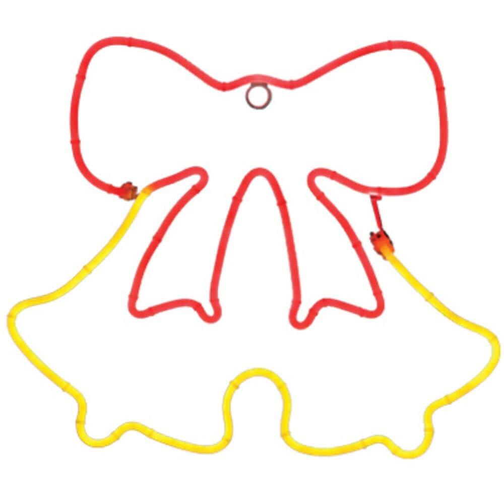 Product description: Add a festive touch to your holiday decor with this Neon Flex Double Bell. The vibrant red bells and shimmering gold accents create an eye-catching display. The neon flex design gives it a smooth, modern glow, perfect for capturing the joy of the season. Built with durable materials, this window decoration is sturdy and lightweight. The LED lights offer long-lasting performance while being energy-efficient, so you can enjoy its glow throughout the holiday season. Its simple plug-and-play setup makes it easy to install, giving you festive flair in minutes. The double bell design adds elegance and holiday cheer to your home. It's perfect for windows, doors or any indoor space.