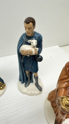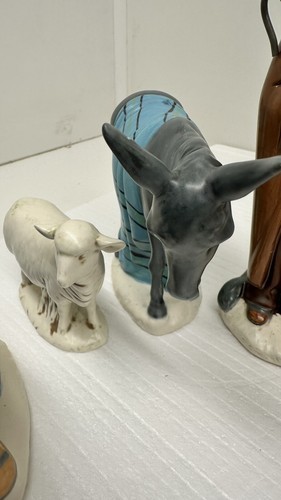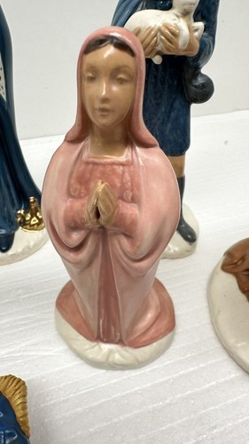 This vintage Holland Mold nativity set is a beautiful addition to any collection. The set includes a ceramic figure of Mary, along with other pieces featuring babies and a sheep. The set was hand painted in 1969 and is perfect for those who love collectibles and holiday decorations. This is a must-have for anyone who loves religious items or vintage collectibles.