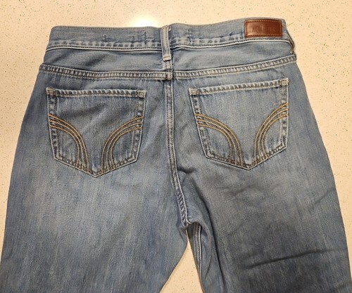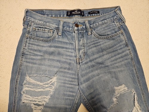 - Hollister Boyfriend Jeans Womens 7/28 Distressed Button Fly Blue Medium Wash