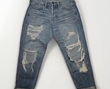 Hollister Boyfriend Jeans Womens 7/28 Distressed Button Fly Blue Medium Wash