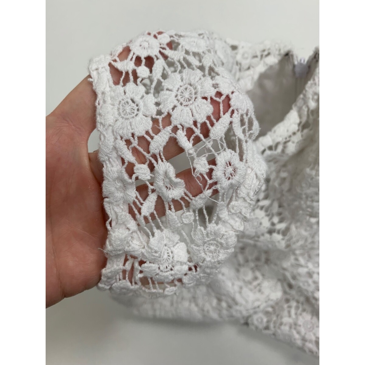 Minor fraying on lace trim.