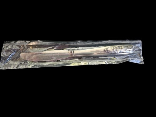 This Oneida Community Hollow Handle Youth Knife features a design inspired by the beloved Beatrix Potter character, Peter Rabbit. Crafted from durable stainless steel with a glossy finish, this 6 5/8" knife is both reusable and dishwasher safe. The handle is easy to grip and features a traditional pattern. Perfect for all occasions, this knife is a charming addition to any kitchen or dining set.