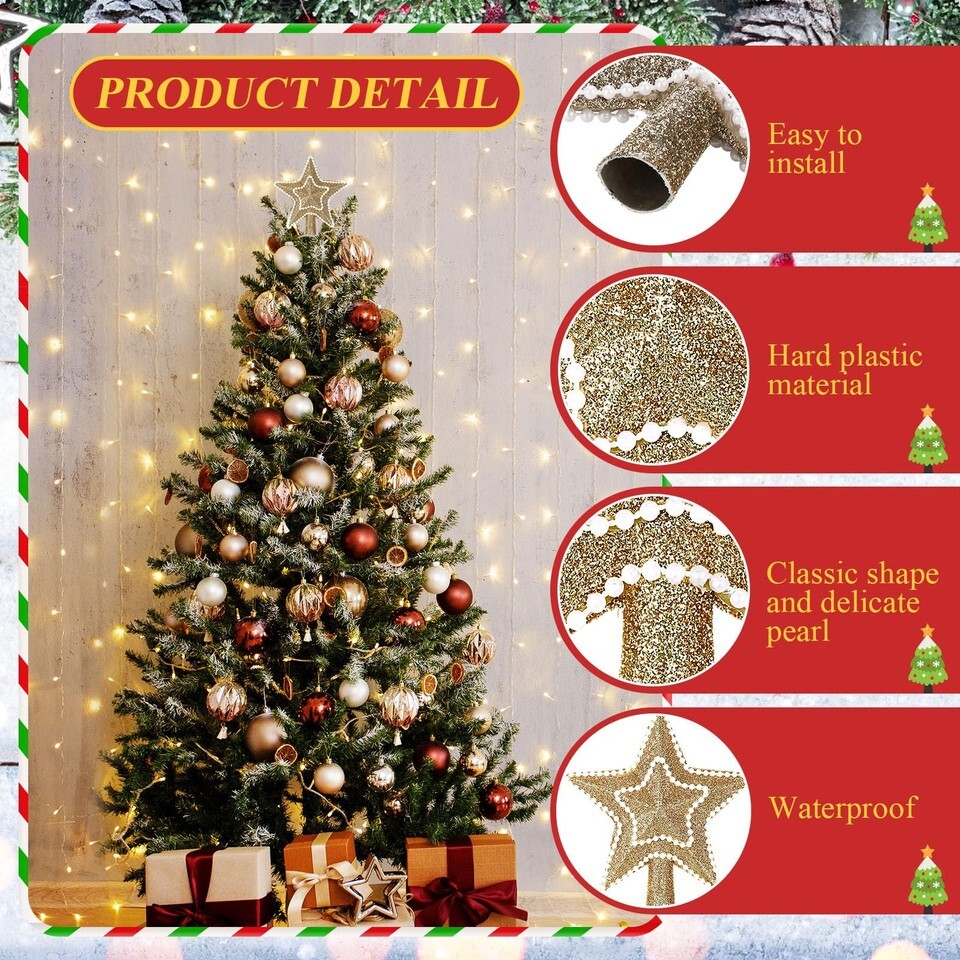 Pearl Design: each Christmas tree topper is surrounded by many pearls for a shining effect; The combination of sequins and pearls allows you to hang it anywhere; It's nice for indoor and outdoor Christmas decorations, such as Christmas trees, rooms, etc
