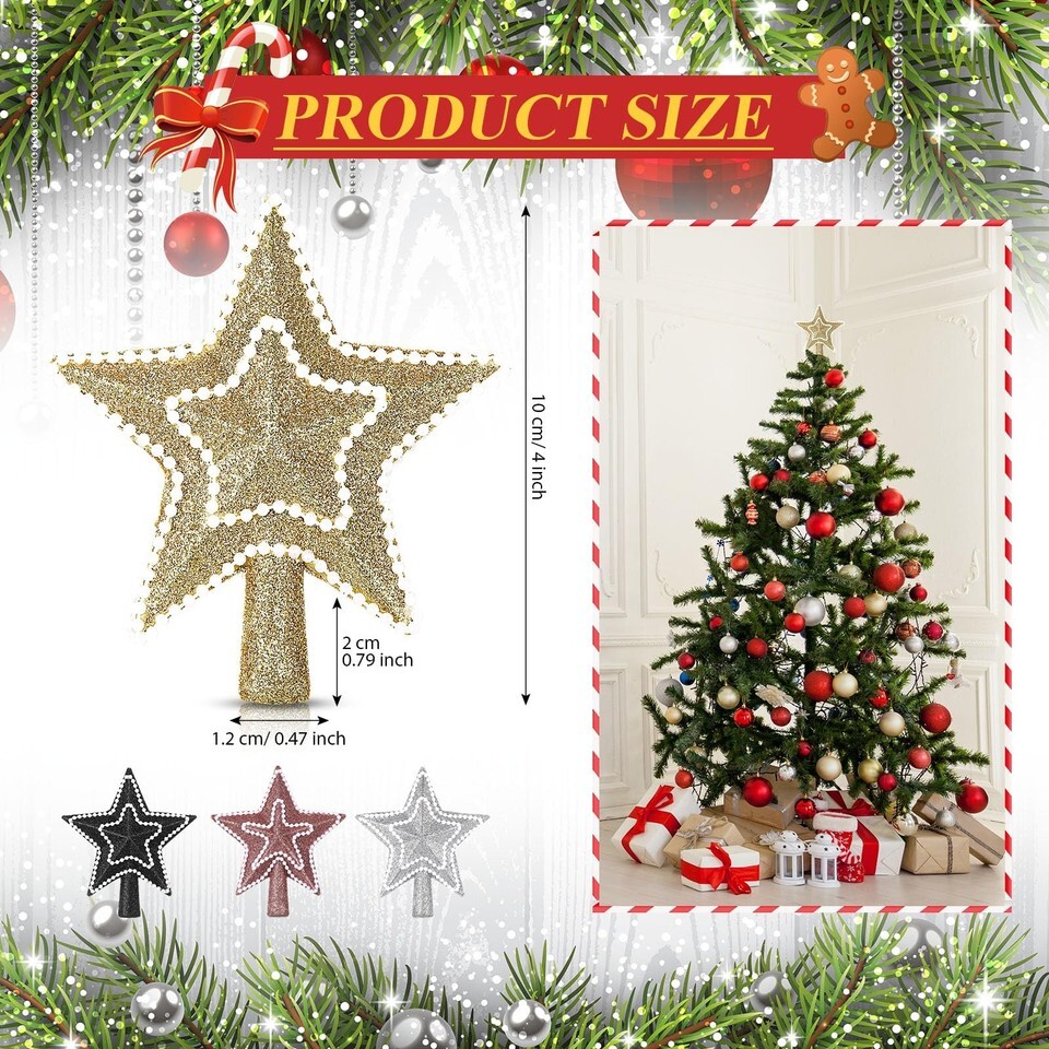 Easy to Install: the mini Christmas tree star has a round bottom mouth; Note: If there is no hole in the bottom, you can cut it with scissors; You can choose from 4 colors, including silver, black, gold, and rose gold, adding a festive touch to your home