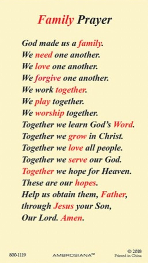 - Holy Family Laminated "Family Prayer" Card, New #PCL-54