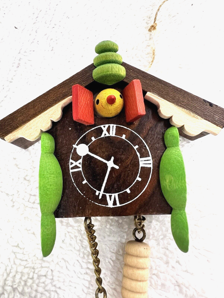 - Holzkunst Erzgebirge Christmas Ornament Coo Coo Clock Original Label 2.5 x 3 In