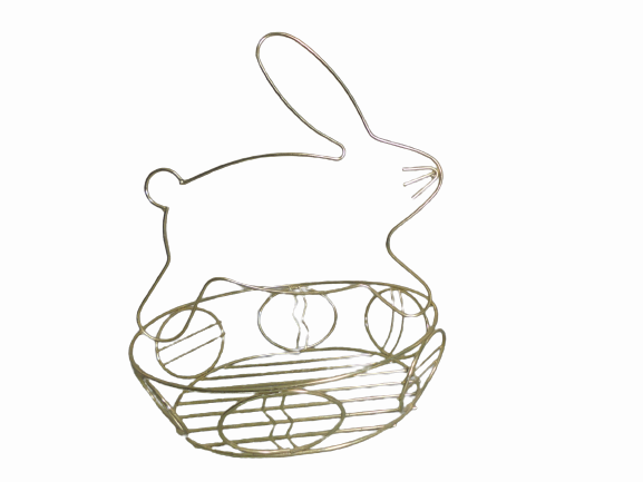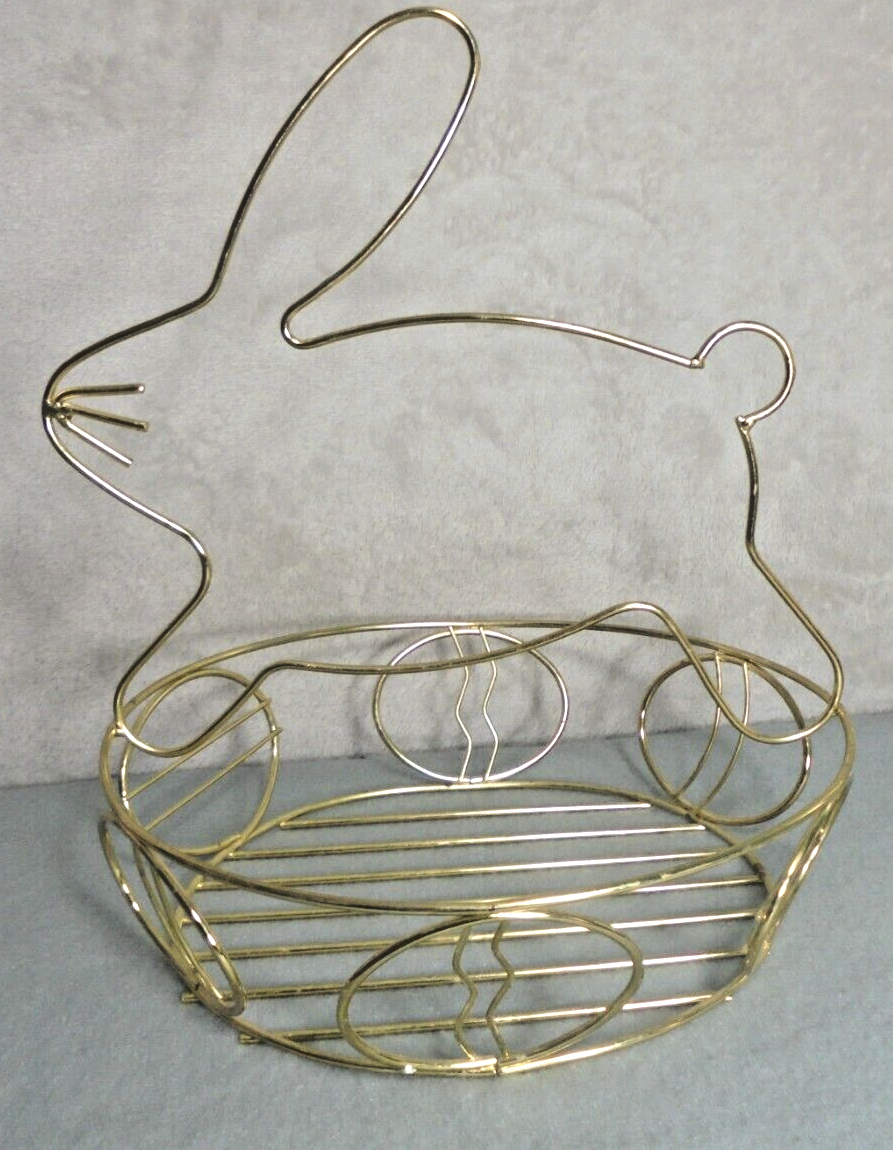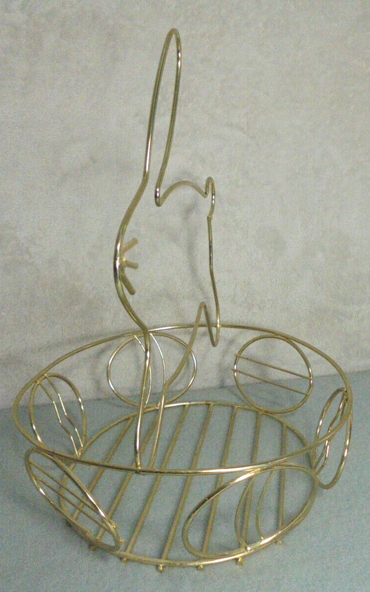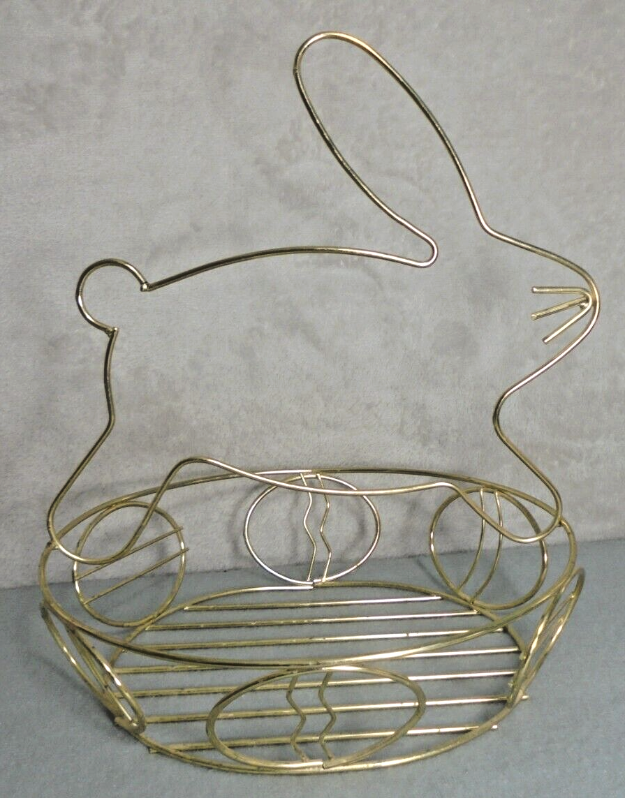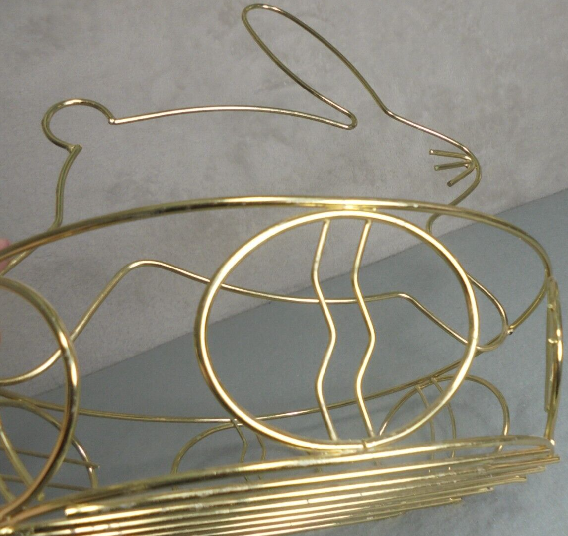- Homco Large Gold Tone Brass Easter Basket Hopping Bunny and Easter Eggs Wire