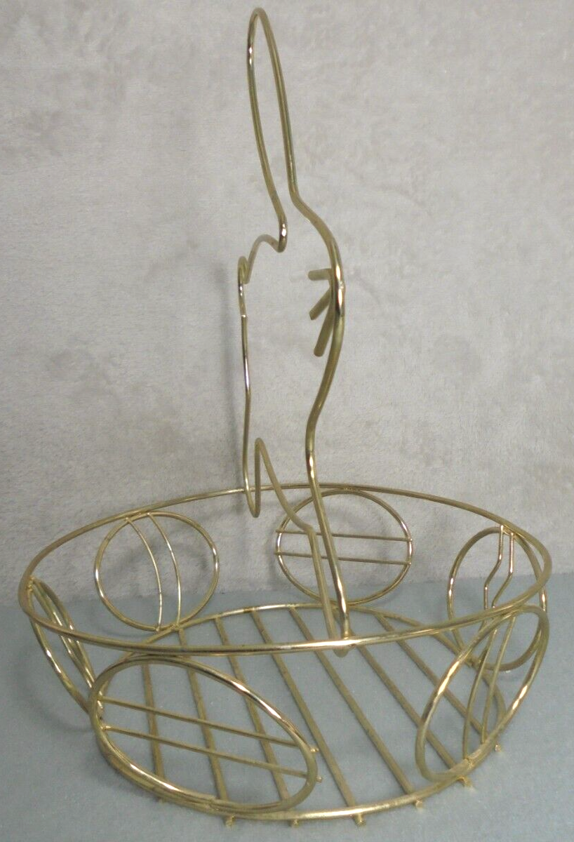Homco Large Gold Tone Brass Easter Basket Hopping Bunny and Easter Eggs Wire