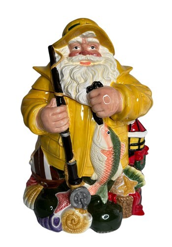 - Home For the Holidays Fisherman Santa Lighthouse Ceramic Cookie Jar Christmas