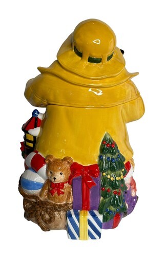 Add a touch of holiday cheer to your kitchen with the Home For the Holidays Fisherman Santa Lighthouse Ceramic Cookie Jar! This festive cookie jar features a charming design of Santa Claus as a fisherman with a lighthouse, Christmas tree and presents, capturing the spirit of the season. Made from high-quality ceramic, this cookie jar is not only a delightful decorative piece but also a practical storage solution for your favorite holiday treats. The secure lid ensures that your cookies stay fresh and delicious. Whether you're baking homemade cookies or receiving them as gifts, this Home For the Holidays Fisherman Santa Lighthouse Ceramic Cookie Jar is the perfect addition to your Christmas decor. Don't miss the opportunity to own this delightful and functional piece.