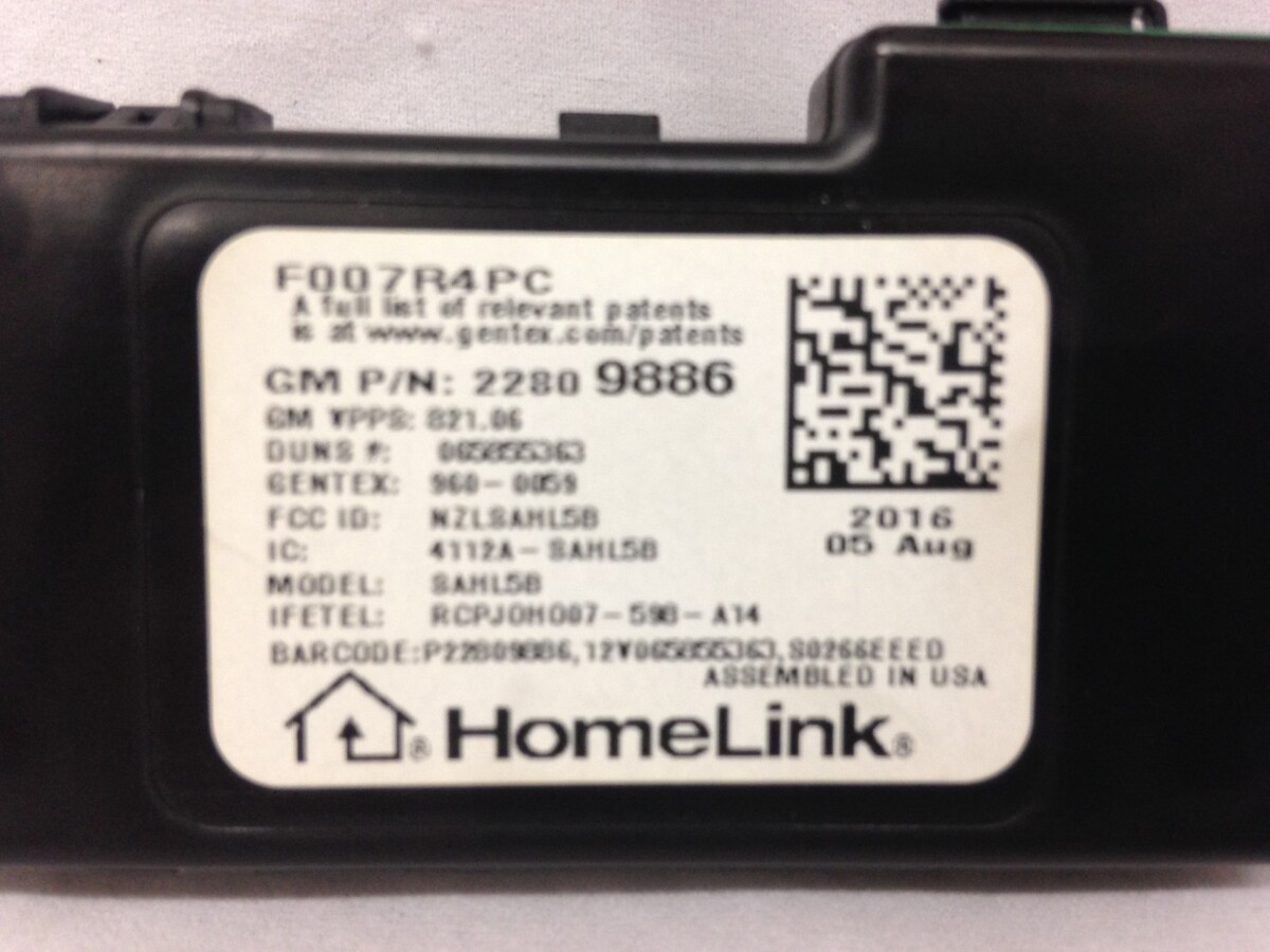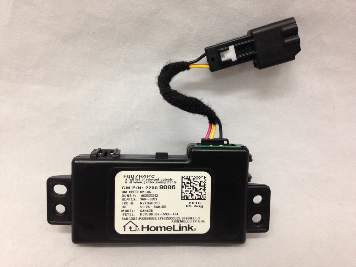 This is an original Homelink garage door opener transmitter for GM vehicles. The Home link system gives drivers unprecedented command over their homes right from the driver's seat. This HomeLink module has switches for three buttons that can be programmed to control RF-activated devices including garage doors, gates, lighting and other enabled devices.