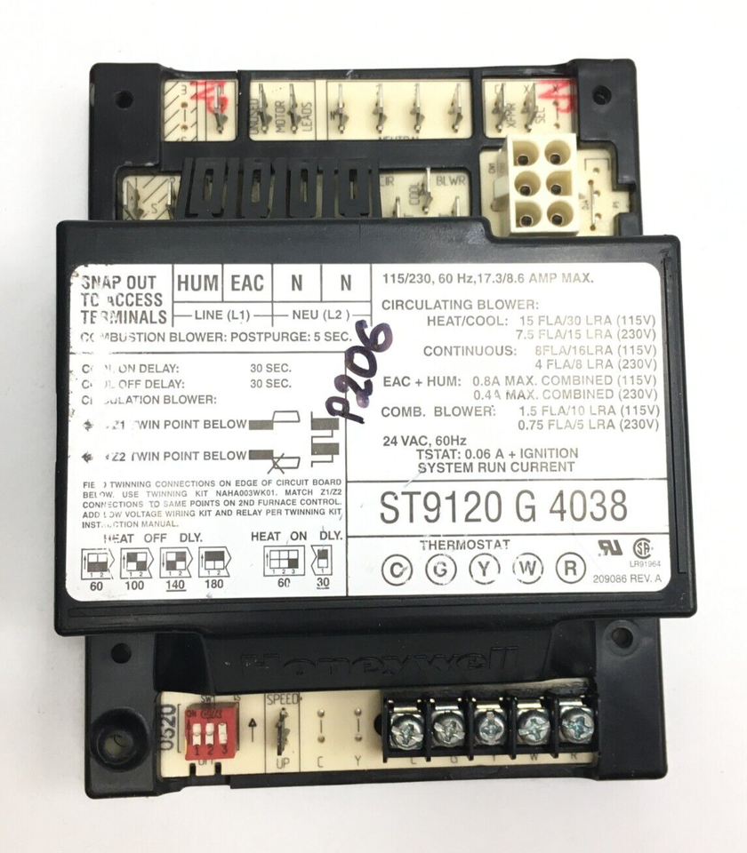 - Honeywell ST9120G4038 Furnace Fan Control Circuit Board used #P206