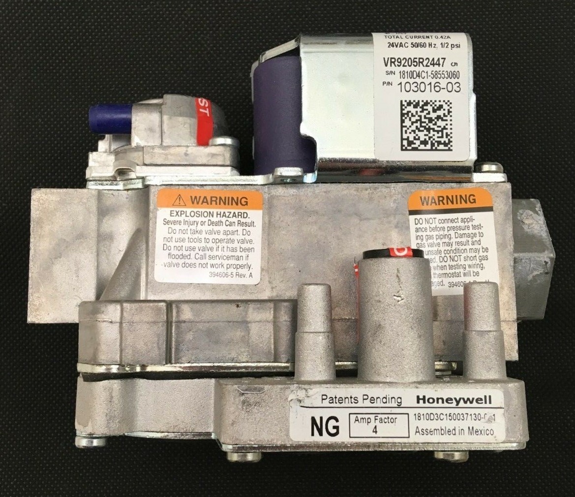 This is Honeywell VR9205R2447 NATURAL GAS VALVE Lennox P/N 103016-01 natural gas valve.
