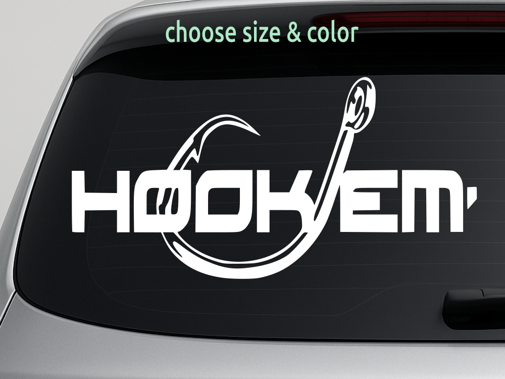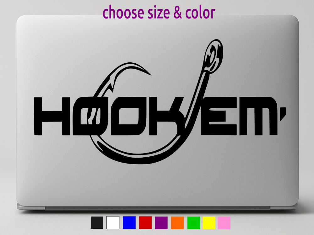 - HOOK EM Fishing Fish Hook Vinyl Decal Wall Truck Sticker CHOOSE SIZE COLOR
