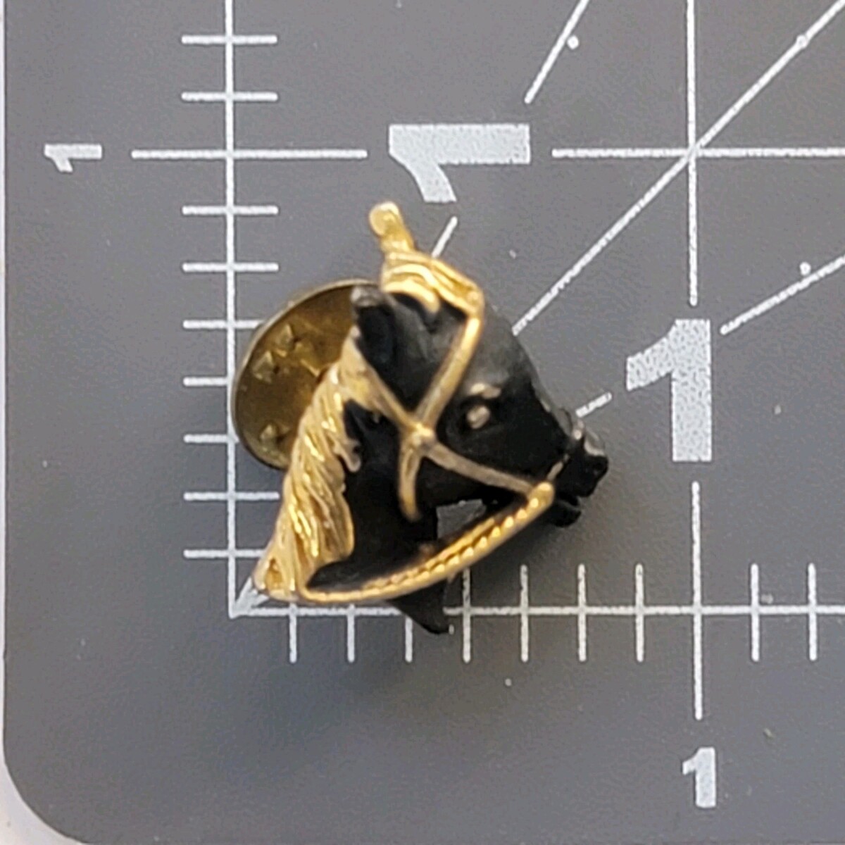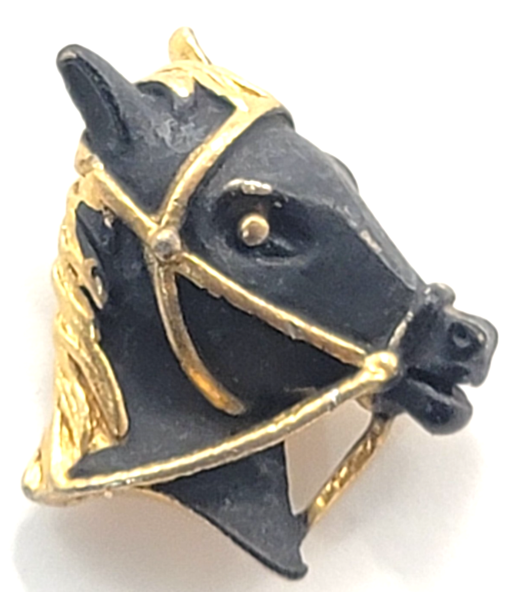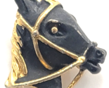 - Horse Head Bridle Black Gold Tone Figural Pin Equestrian Riding Western Jewelry
