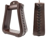 - Horse Saddle Western Trail Brown Leather Covered Bell Riding Stirrups 51176BR