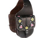 - Horse Western Floral Tooled Saddle Trail Riding Leather Cantle Bag Tan
