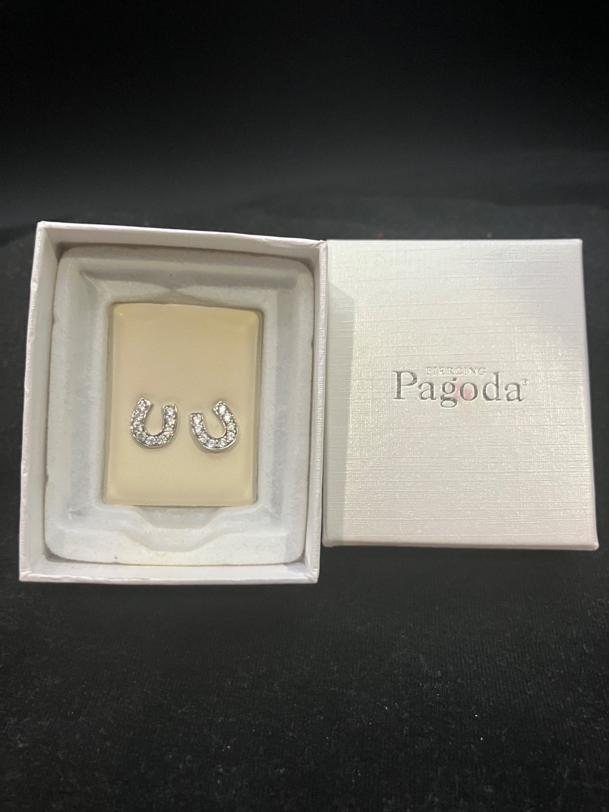 - Horseshoe Sterling Stud Earrings by Pagoda with Cubic Zirconia Stones 925 w/box