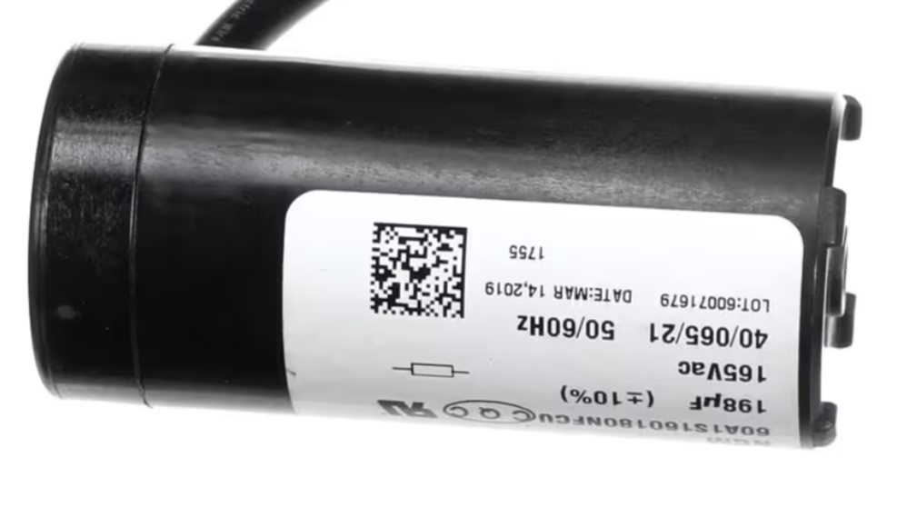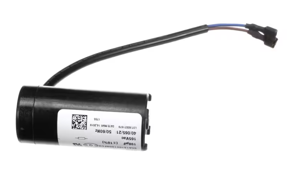 The Hoshizaki 60A1S160180NFCU Start Capacitor (part number 60071679) is a 198 microfarad (uF), 165 Volt capacitor designed to provide the high torque required for starting compressors and motors in commercial refrigeration systems. Operating at 50/60Hz, this start capacitor ensures quick and reliable startup performance, ideal for supporting ice machine models under frequent-use conditions.