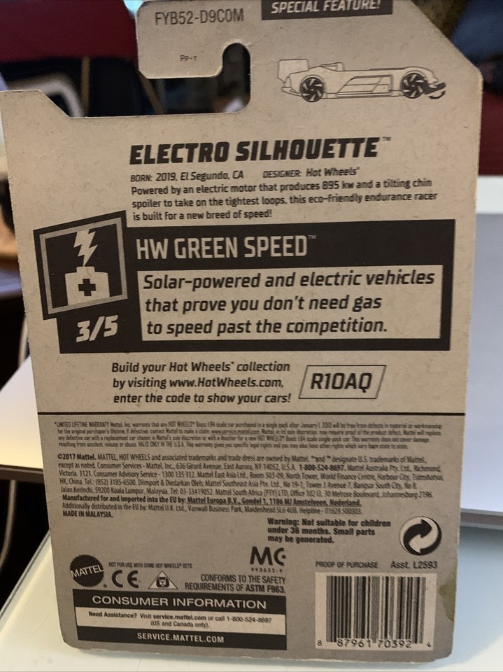 - HOT WHEELS 2019 #216/250 YELLOW ELECTRO SILHOUETTE HW GREEN SPEED
