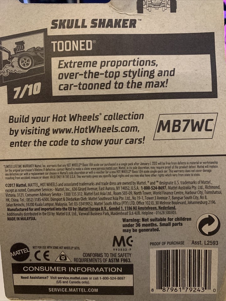 This Hot Wheels Tooned Skull Shaker car is a must-have for any collector or enthusiast. With its intricate design and high-quality diecast material, it is sure to impress. The car is part of the 2020 Tooned series and is number 7 out of 10, with a product code of BBGHD46.