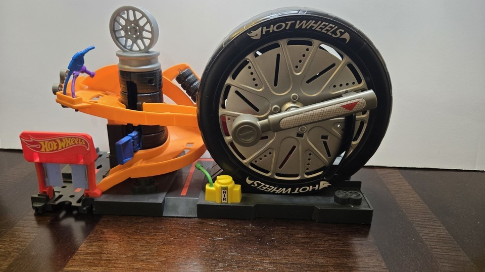- Hot Wheels City Super Spin Tire Shop Playset Track Builder Retired 2017
