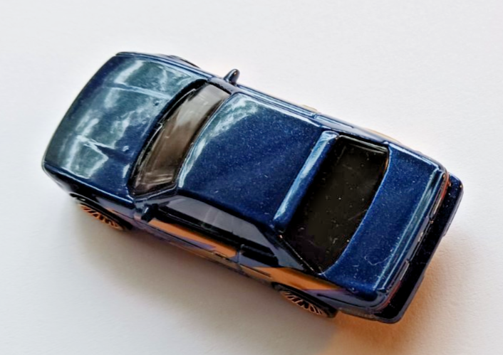 This is a loose, just out of package condition Nissan Silvia S13 sports coupe! This one is a very nice dark blue version, with beautiful graphics that match the wheels, plus tinted windows and nice details like the tail lights.