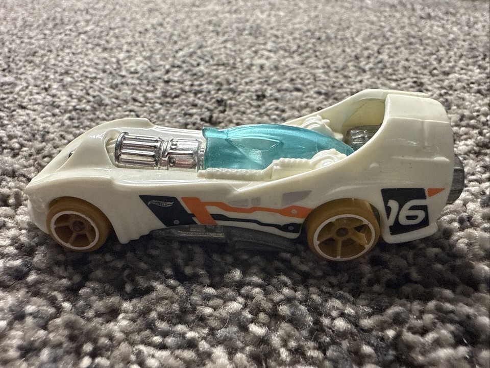 - Hot Wheels White Race Car White #16 CDV46 Thailand Mattel Diecast 1995/2014