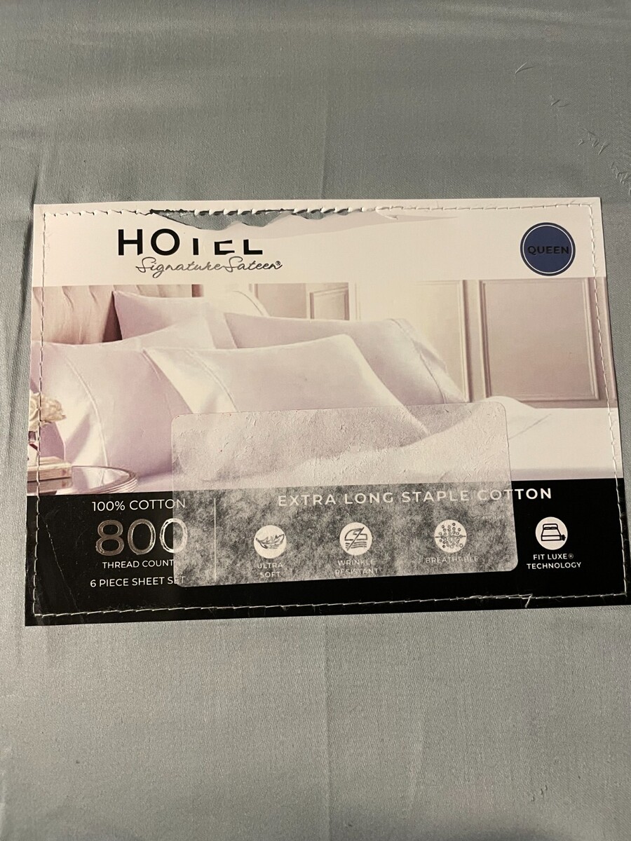 - Hotel Signature Sateen 800 TC XL Staple Cotton Queen Sheet Set 6 piece Blue