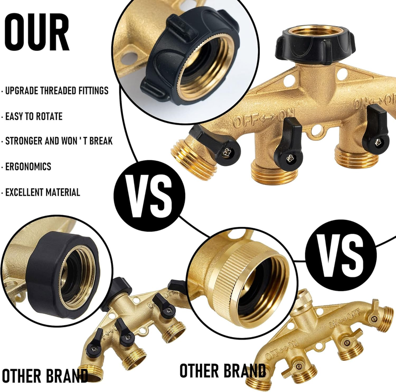 - Hourleey Brass 4 Way Heavy Duty Garden Hose Splitter, Water Hose Splitter for 3/