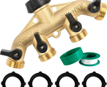 Hourleey Brass 4 Way Heavy Duty Garden Hose Splitter, Water Hose Splitter for 3/