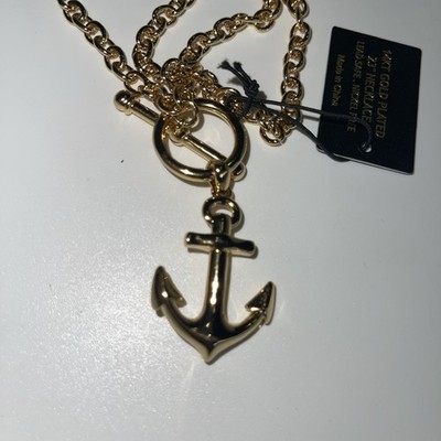 - HOUSE OF HARLOW 23” 24k Gold Plated Anchor Toggle Necklace NWT $150