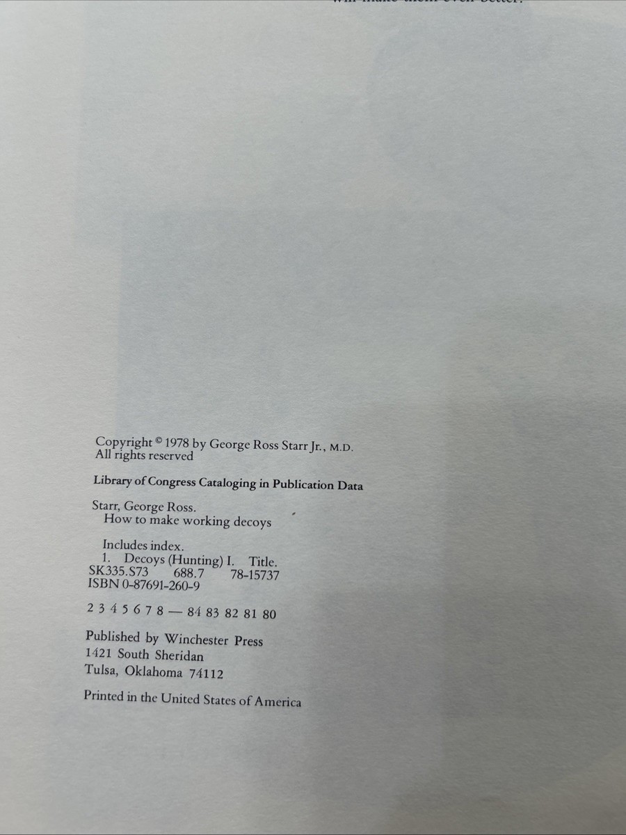 - HOW TO MAKE WORKING DECOYS, 1978 BY GEORGE ROSS STAR , JR. M.D.