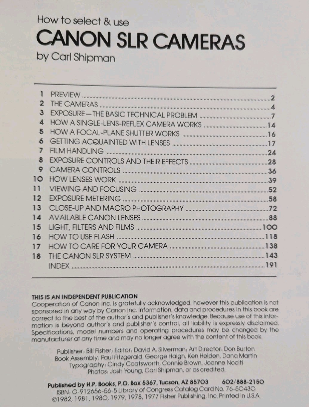 - How to Select and Use Canon SLR Cameras (1982 revised) Carl Shipman