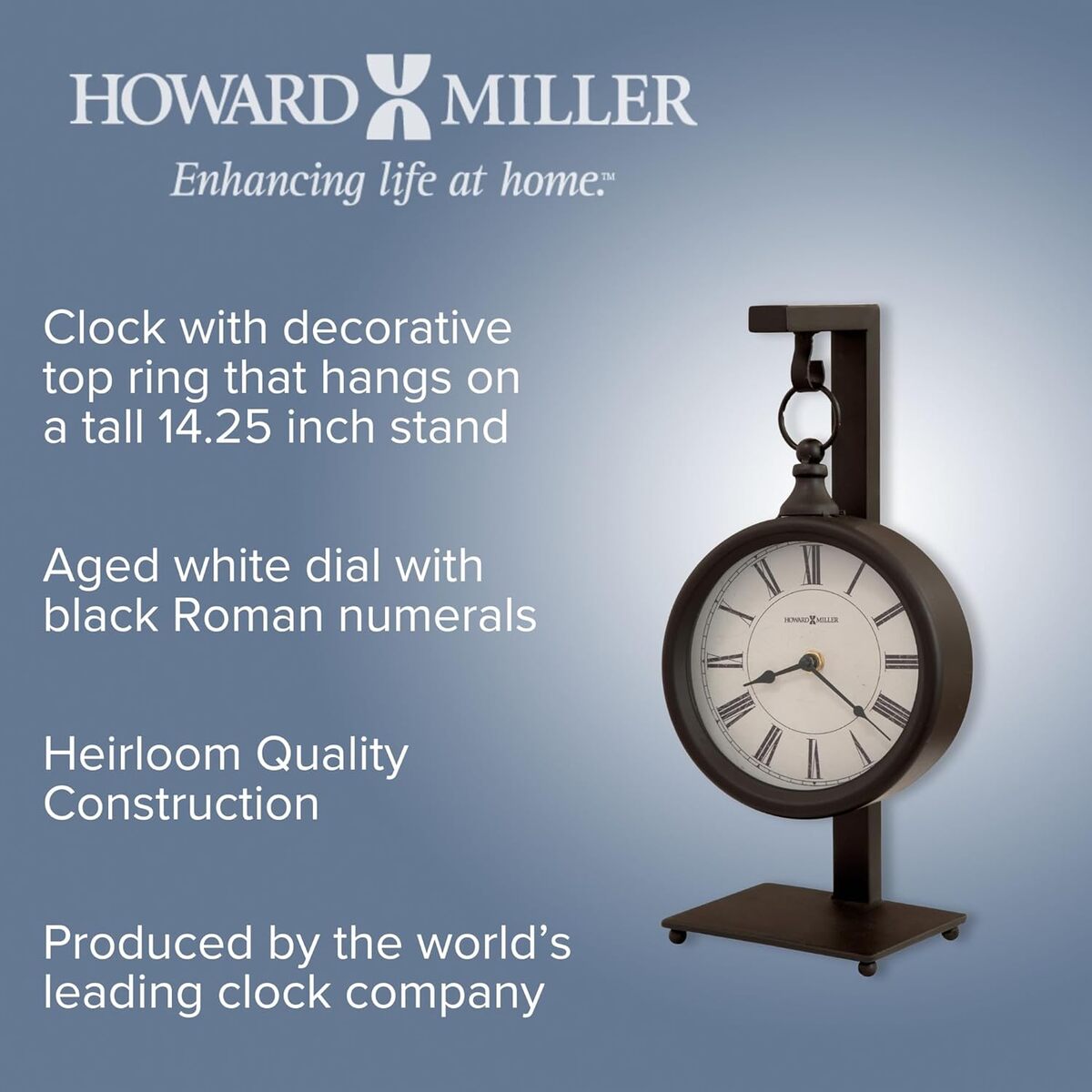 Title : Howard Miller Loman Mantel Clock, Hangable Round Analog Dial Roman Numerals with Quartz Movement, Solid Metal Frame Black Finish Idle Alarm Clock for Home Decor Office Battery Powered