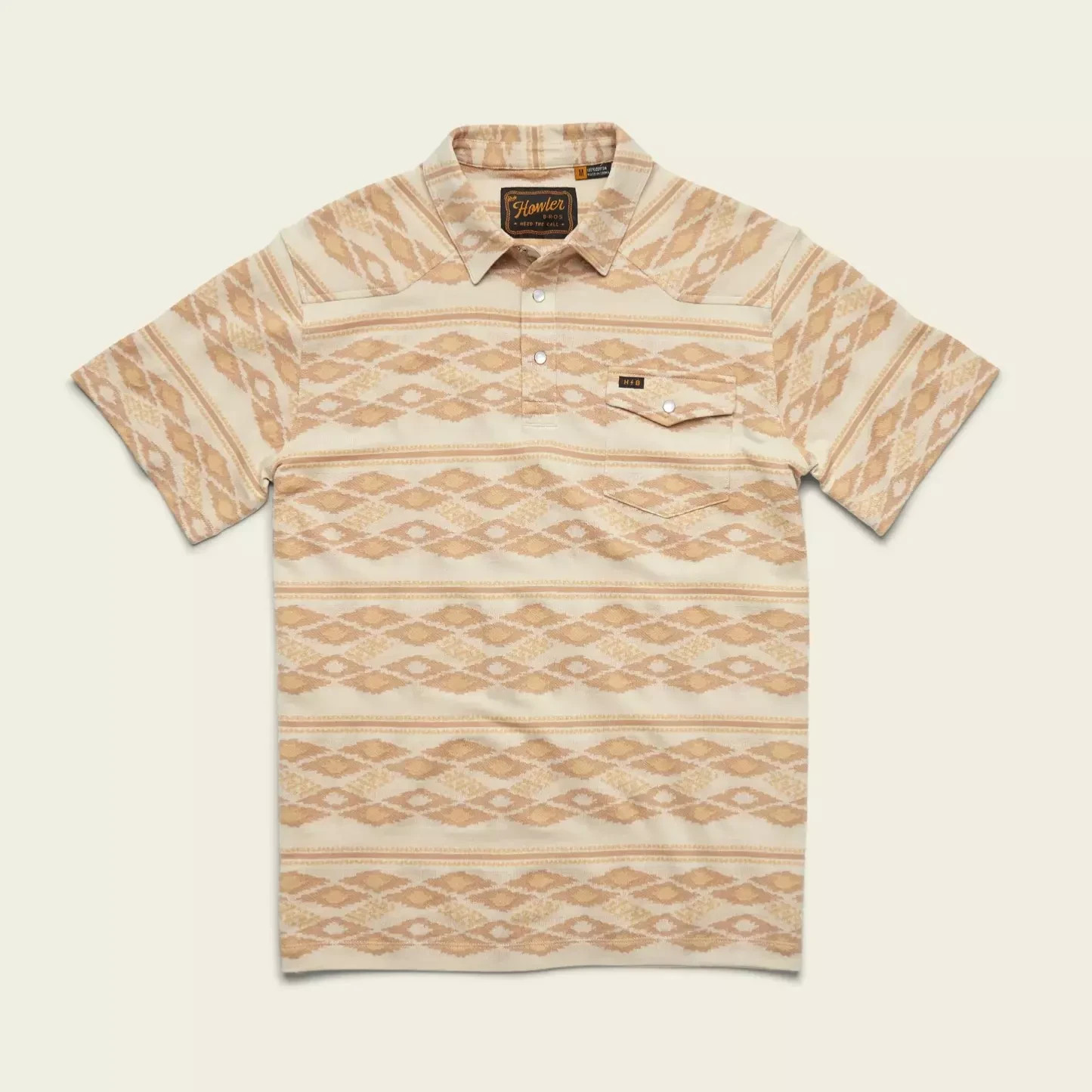 Howler Bros Polo Pearl Snap Ranchero Jacquard polo Shirt Aztec Print Medium