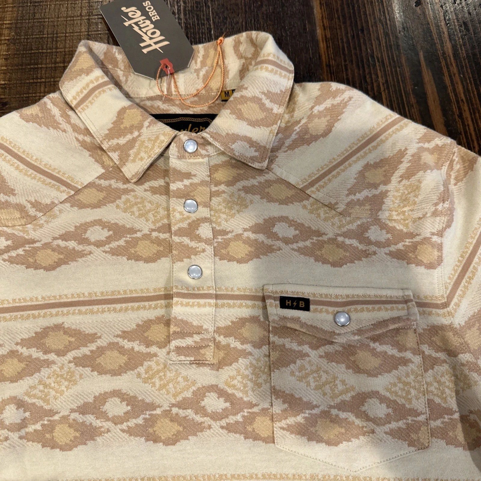 - Howler Bros Polo Pearl Snap Ranchero Jacquard polo Shirt Aztec Print Medium