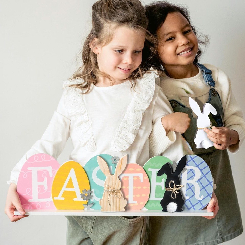 Different Color DesignIncludes 3 different color style, black, white, and natural wood to complement any Easter theme or home dcor,wooden Easter bunny tabletop decorative blocks to enhance your Easter atmosphere