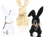 Hryxic 3 Pcs Easter Bunny Wooden Decorations Table Centerpiece White Black