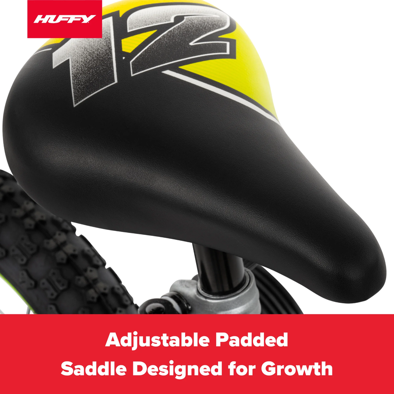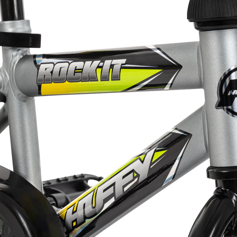 Huffy Rock It Kids Bicycle, 12" Wheels, for Kids Ages 3+ Years, Training Wheels, Grey The Huffy Rock It Kids Bike is perfect for young adventurers aged 3 and up. With its 12" wheels and bold Matte Grey and Lime design, this bike offers a daring look that inspires excitement. The durable steel frame is built to last, while the padded seat and handlebar pad ensure a comfortable ride. It also comes with sturdy training wheels, making it great for beginners learning to ride. The Huffy EZ Build feature allows for easy assembly, so your little one can start riding in no time. Whether cruising through the neighborhood or exploring the park, this bike delivers endless fun and helps develop essential riding skills. Parents will appreciate the quality and safety features, while kids will love the freedom and excitement it brings. The Huffy Rock It Kids Bike is truly a fantastic choice for any young rider. From Huffy, We Make Fun!