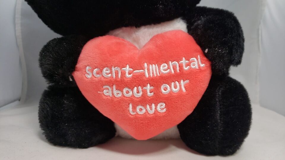 This adorable plush skunk features a classic black and white design, holding a vibrant red heart with the sweet message ?Scent-imental about our love.? Made from soft, huggable fabric, it?s perfect for snuggling and makes an ideal gift for someone special. Whether for Valentine?s Day, anniversaries, or just because, this plush skunk is sure to bring a smile and warm the heart of anyone who receives it.
