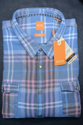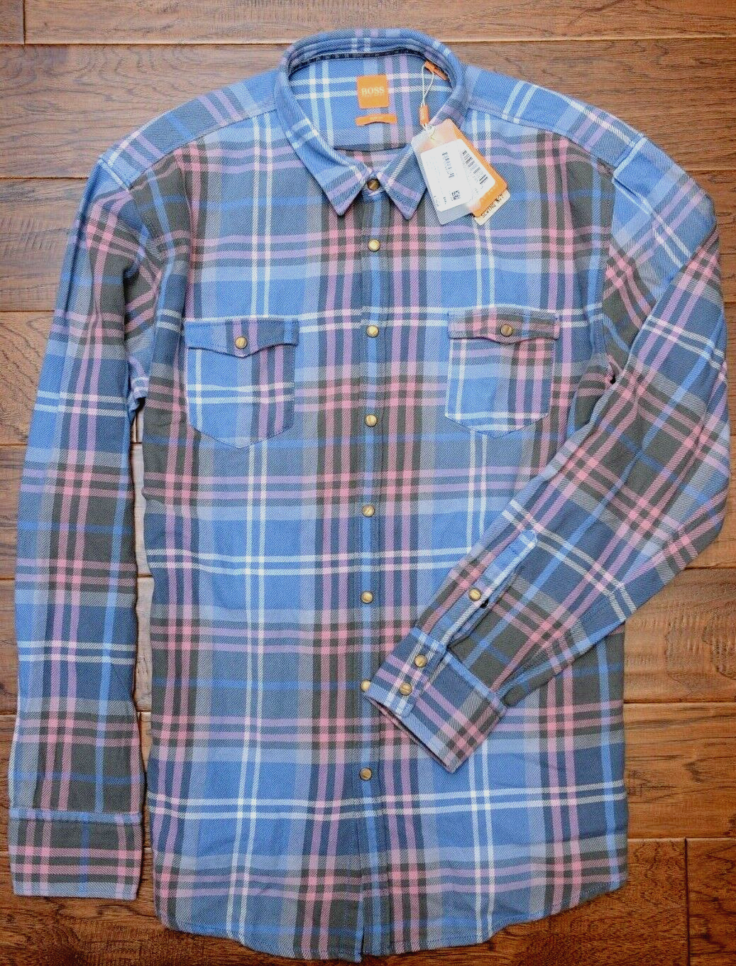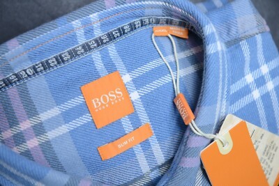 Dans la boutique, vous trouverez egalement des accessoires appropries (veuillez cliquer sur l'image) Hugo Boss Men's Edoslime Slim Fit Open Blue Blue Check Flannel Chemise de sport decontractee en coton