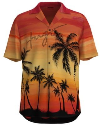 - Hugo Boss Ellino Mens Straight-Fit Sunset-Print Shirt Sunset Orange-XL