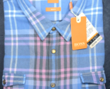 NWT Hugo Boss Men's Edoslime Slim Fit Open Blue Check Flannel Cotton Casual Sport Shirt