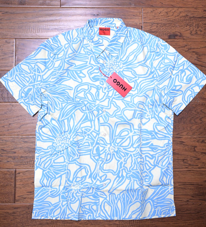 Hugo Boss Men Ebor Short Sleeve Straight Fit Floral Print Cotton Casual Shirt XL
