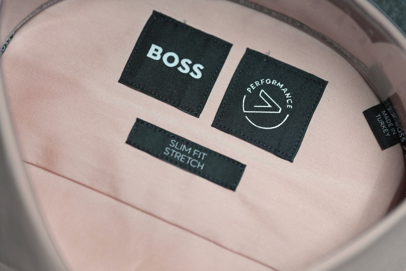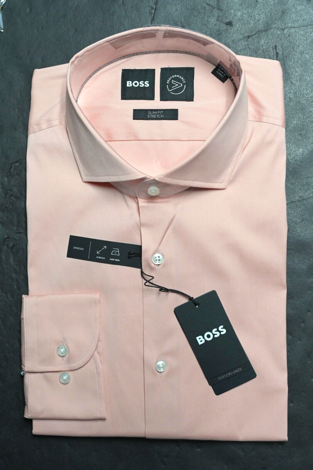 - Hugo Boss Mens Hank Slim Fit Performance Stretch Cotton Pink Dress Shirt 42 16.5